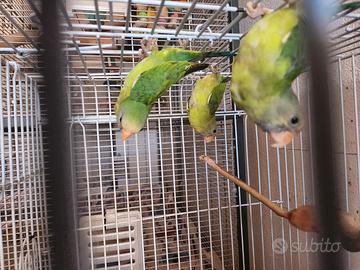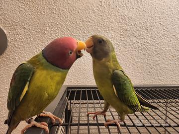 Vendo 4 pulli di parrocchetto testa di prugna (Psittacula cyanocephala) a fine svezzamento. I piccoli sono allevati a mano, quindi docili e abituati al contatto umano. Sono in ottima salute. Vivaci e ben socializzati. Cresciuti con cura e attenzione, ideali come animali da compagnia. Non vendo la coppia. Adesso hanno circa 1 mese Disponibile consegna in tutta la Sardegna con spese a carico dell'acquirente. Per maggiori informazioni o foto/video contattami in privato.