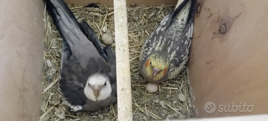 Pullo di calopsitta allevato a mano perlato faccia gialla nato il 2 gennaio 2026 Nato da mamma perlata faccia gialla e padre perlato faccia bianca (in ultima foto)