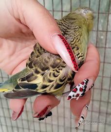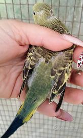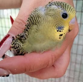 Disponibile pullo di pappagallino ondulato ( cocorito) da allevare a mano . Color verde "oliva". Disponibili anche altri fratellini di altri colori e altri pulli più piccoli di diverse nidiate Prezzo 25,00 euro