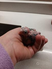 Pullo di Calopsita allevato a mano, nato il 17 marzo da coppia calopsita maschio ancestrale e femmina perlata. Per concludere lo svezzamento ho disponibile, a parte, NutriBirdA21