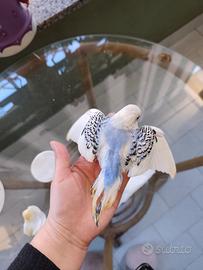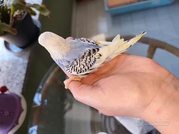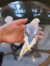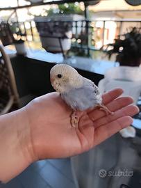 Pullo di Cocorite allevato a mano cioè allo stecco o alla siringa Abituato all'uomo Ha già il piumino quindi non hanno bisogno della luce termica perché può riscaldarsi da solo È serie blu Genitori visibili .