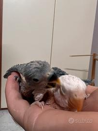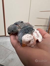 Pulli di 23 e 24 giorni Nati da madre albina e padre blu doppio fattore Sono un albino e un blu Si cedono in coppia
