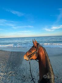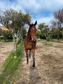 Bravissima e dolce , brava nella gestione da terra ,alla corda,in passeggita e in campo ,sta venendo avviata al salto ostacoli ma puo essere avviata a qualsiasi disciplina anche come cavalla da scuola o passaggiata (va avanti e esce anche in compagnia), sana