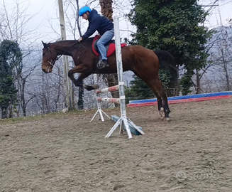 Ha debuttato nel galoppo ma senza grossi risultati. La cavalla è i mano, leggera di bocca e di facile gestione. Provata in passeggiata, non ha paura di nulla e avviata sul salto.