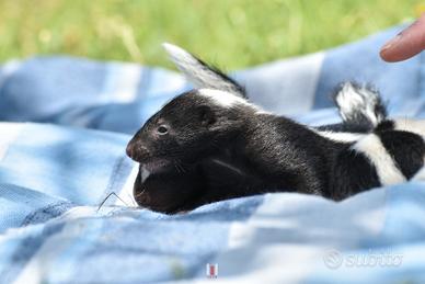 Ultima puzzola disponibile. Bianco e nera, femmina. la piccola ha 55 giorni, deghiandolata, vaccinata e con Chip. regolarmente sverminata. E' imprintata e dolcissima. possibilità di trasporto
