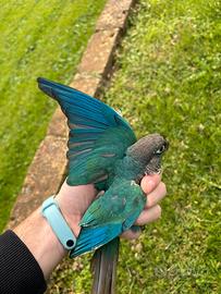 Cedo pyrrhura conuro guance verdi mutazione turchese, allevato dai genitori del 2021 gia riprodotto con successo. Vendo per fuga della femmina. Anello, cites e sessaggio ok