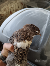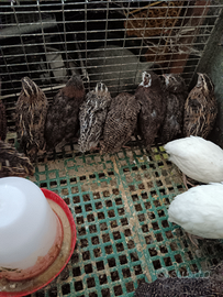 Vendo quaglie Jumbo adulte, sono quaglie da carne e ovaiole che arrivano a pesare 300g, presenti in varie colorazioni, ancestrale, bianca, tuxedo, rosetta ed altre. Il prezzo è di 4? per ogni animale acquistato