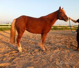 cavalla incrocio quarter haflinger, 6 anni, bravissima nel lavoro in campo, ottima per trekking e passeggiate da bambini.