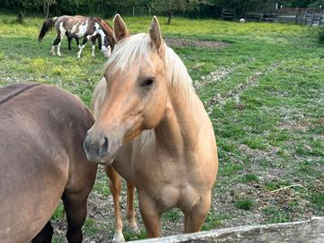Cavalla Quarter Palomina del 2021..doma base reining..ottimo carattere brava e disponibile anche in trekking impegnativi..genitori importati dal Texas