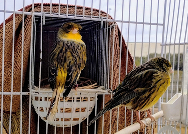 vendo quattro canarini novelli 2025 ottimo ceppo, allevati con cura e passione età: circa 2-4 mesi, nati in allevamento familiare alimentazione sana e controllata, abituati a frutta e verdura