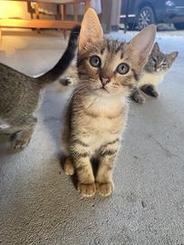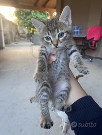Poco più di due mesi fa, la mia gattina ha partorito questi splendidi cuccioli. Sono quattro maschietti dal carattere vispo, allegro e dinamico, ma purtroppo per mancanza di spazio, sono costretto a donarli. Sono dei tigrati europei, spulciati e sverminati. Disponibili singolarmente, in coppia o tutti insieme. Chi interessato, mi contatti. Si trovano in zona Catanzaro Lido.