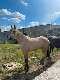 Vendo puledra Quorter di 30 mesi Domata a sella esce in passeggiata tranquillamente ottima per qualsiasi disciplina Molto brava e docile Circa 1,50 al garrese Documenti ok Padre e madre con doc americani Possibilità trasporto tutt'Italia Per altre info e video contattare 3890939893