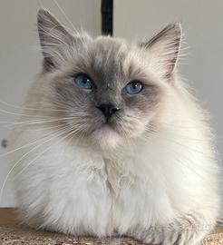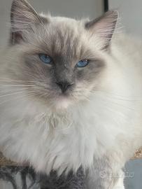 Ragdoll maschio di un anno disponibile ad essere accolto in una nuova famiglia. Bellissimo grande e robusto, carattere dolcissimo ed affettuoso. Verrà ceduto con libretto sanitario e vaccinazioni in regola. Genitori testati geneticamente fiv felv negativi. Possibile vederlo da vivo previo appuntamento. Per info contatto al numero 3534076849