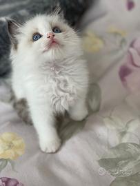 Disponibili bellissimi e dolcissimi cuccioli di Ragdoll dagli occhi blu incantevoli dal carattere superlativo. Nati e cresciuti liberi in casa, in ambiente familiare a stretto contatto con bambini e animali. Manipolati sin dal primo giorno, hanno un imprinting curatissimo, si abbandonano tra le braccia e fanno sempre le fusa. Dolcezza infinita, pelo soffice e setoso, adatti a famiglie con bambini e anziani per Pet Therapy. Saranno ceduti svezzati, sverminati, trattati con antiparassitario, abituati all'utilizzo della lettiera e del tiragraffi, con certificato di buona salute, libretto sanitario del veterinario, vaccino trivalente. Mamma Ragdoll e Papà Ragdoll, entrambi dotati di pedigree di altissima genealogia di nostra proprietà , sono esenti da malattie genetiche , FIV e FELV negativi. Per tutte le informazioni contattarmi al numero 3534076849 anche via WhatsApp. Solo veri amanti degli animali. Possibilità di vederli dal vivo previo appuntamento.