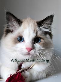 Allevamento Elegant Dolls - Roma Socio dell'associazione ANFI, del club Ragdoll Cattery Club Italiano e socio fondatore dell'Italian Ragdoll Club Lui si chiama Orfeo, un meraviglioso cucciolo maschio Seal Bicolor, nato il 31 gennaio, dal carattere estremamente dolce e affettuoso. È un gattino socievole, vivace e giocherellone, che ama interagire con le persone ma anche rilassarsi tra le braccia del suo umano di riferimento, ricambiando le coccole con tantissimi "baci". Il suo pelo è soffice e vellutato al tatto. Orfeo è già ben educato alla vita domestica: utilizza correttamente la lettiera e il tiragraffi, è abituato al bagno in casa, e segue un'alimentazione varia che comprende sia crocchette di qualità sia cucina casalinga. Entrambi i genitori sono testati e negativi per le principali malattie genetiche della razza, tra cui HCM (cardiomiopatia ipertrofica) e PKD (rene policistico), oltre a FIV e FeLV. Orfeo verrà affidato completo di: - Sverminazioni - Vaccinazioni - Analisi delle feci - Microchip - Passaggio di proprietà ANFI - Pedigree ANFI Questo splendido gattino di razza è pronto per entrare in una nuova casa e diventare parte integrante della famiglia. Cerchiamo per Orfeo una famiglia responsabile, amorevole e consapevole, capace di offrirgli cure, stabilità e tanto affetto per tutta la vita. Come allevamento, offriamo consegna in tutta Italia. Per chi non ha la possibilità di venirci a trovare di persona, siamo disponibili a organizzare videochiamate conoscitive, così da permettere di conoscere Orfeo. È gradita presentazione! #ragdoll #disponibile #roma #ragdollroma #cucciolodisponibile