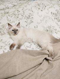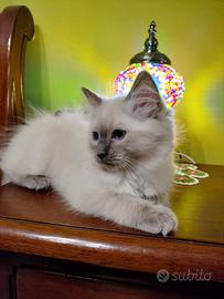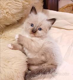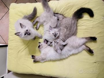 Da pochi giorni sono nati 5 fantastici cuccioli figli della nostra coppia di ragdoll, quattro sono ancora disponibili e saranno pronti a raggiungere le loro nuove famiglie a partire dal novantesimo giorno,per tale periodo saranno vaccinati,svezzati,abituati alla lettiera al tiragraffi ai vari giochi,ai rumori domestici e alla convivenza con altri gatti e cani di grossa taglia,i genitori sono negativi a fiv e felv vivono in casa e hanno a disposizione delle aree esterne recintate,non sono mai stati a contatto con altri gatti ,tutti i loro figli di cucciolate precedenti godono di ottima salute,dopo il primo vaccino si potranno conoscere di persona ed essere scelti in base all'ordine di prenotazione (che sarà solo verbale) saranno ceduti con libretto sanitario e un kit per i primi giorni,la richiesta è di 650 euro