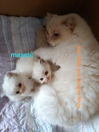 Nati il 30/12/2025 colore Lilac tabby and bicolore White,Lynx bicolore blu,Seal tabby mitted.Verranno ceduti dopo 75 GG dalla nascita.No pedigree.