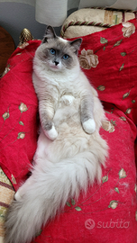 Bellissimo maschio ragdoll blu mitted di 22 mesi, peso 5 kg, disponibile per monta. Carattere dolcissimo e coccolone, pelo folto e setoso, occhi azzurro intenso. Padre con pedigree. Fiv e felv negativo.