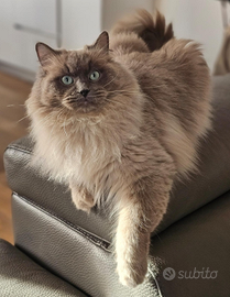 Si cede in REHOMING giovane femmina adulta di 3 anni di razza Ragdoll (colorazione "Mink", rara in Italia) con Pedigree AFEF (riconosciuto ministerialmente) gia sterilizzata, testata e negativa per tutte le malattie genetiche (comprese quelle principali della razza Ragdoll HCM/PKD), testata sul gruppo sanguigno (A), testata e negativa per le principali malattie infettive (FIV/FELV) con libretto sanitario, completamente vaccinata, completamente sverminata, con certificato di buona salute, test feci negativo per parassiti intestinali (compresa la Giardia), corredino per il cambio casa (crocchette, umido, giochini, ecc).