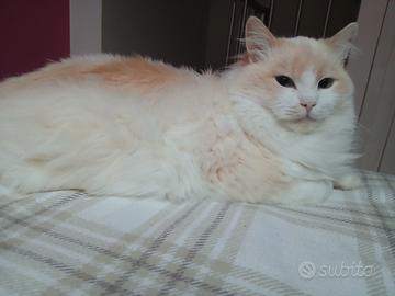 Gatto razza ragdoll per accoppiamento , di due anni carattere molto dolce, abituato in casa. Pelo bianco folto e rossiccio..occhi azzurri . Regolare libretto sanitario