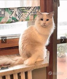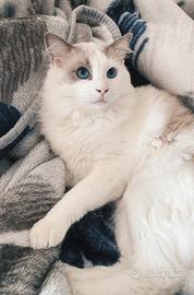 Gatto razza Ragdoll con pedigree disponibile per monte esterne.