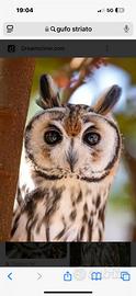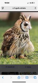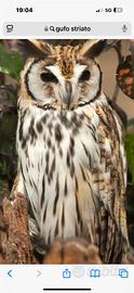Disponile un pullo di Asio Clamator (gufo Striato) Imprintato all'uomo dalla nascita, di 30 giorni anellato e con regolare documentazione, possibile corso di avvicinamento ai rapaci, gestione, alimentazione e volo. Corsi di falconeria in presenza e online se distanti da Roma. Per vedere i nostri video cerca Alex falconeria e addestramento. Possibile spedizione in foto il pullo e come sara'da adulto
