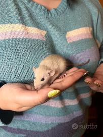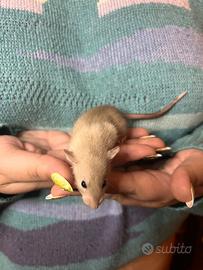 Dolci e teneri rattini da compagnia domestici, disponibili maschi e e femmine, meglio se preferibilmente presi in coppia o trio. Svezzati e indipendenti dalla mamma, hanno 5 settimane. Tutti colorazione siamese (color crema musi marroncino) Li regalo se venite a prenderli a Perugia, 15 euro se ci incontriamo altrove nei dintorni. Per qualunque informazione 3392063459