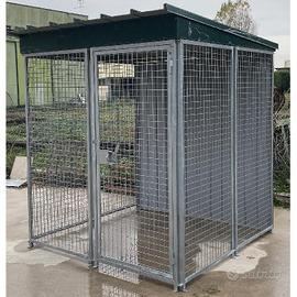 Recinto formato da pannelli realizzati in rete elettrosaldata. Dotato di perfetto tetto ad ondulina che poteggerà i Vostri cani dalle piogge e dal sole.