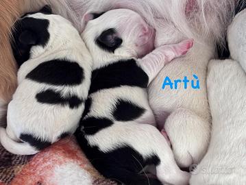 Regalasi 8 cuccioli 3 femmine e 5 maschi nati il 28/12 futura taglia media, madre Border Collie Bianca e Rossa LINEA DA LAVORO e padre meticcio simil pitbull bianco a macchie nere.