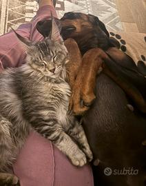 Mimi compie 2 anni ad aprile, è una gatta molto dolce e affettuosa, cerca tanto il contatto, dorme nel letto e appena ti siedi sul divano viene a farti da coperta.