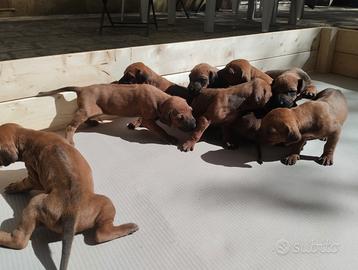 Disponibili 9 cuccioli di Rhodesian Ridgeback in Salento. 6 femmine 3 maschi Pedigree Vaccino Sverminazione Microchip Dalla savana africana il Rhodesian Ridgeback è un grande guardiano e cacciatore, impavido e fedele. Grande e altrettanto dolce e coccolone in famiglia, diffidente con gli estranei. Per ulteriori informazioni contattare il numero 3923788655/3518829926 Daniele.