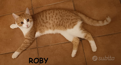 Io sono Roby, un micio bellissimo di 7 mesi, ho un bellissimo manto bianco rosso e sono un grande giocherellone e amante della compagnia felina. Sono stato recuperato con i miei fratelli e sorelle in un bidone da muratori... che dire... siamo stati tanto fortunati, una parte delle mie sorelline sono gia' state adottate e io sono ancora qui, in attesa di una bella famiglia tutta per me, qui non posso piu' stare, devo lasciare posto ad altri micini bisognosi e io sono pronto gia' da tempo a una nuova vita ma finora nessuno mi ha notato. Eppure sono molto molto dolce anche con l'essere umano, se volete fare una esperienza di forte relazione con un gatto , eccomi sono qui!!!! Vi aspetto!!!