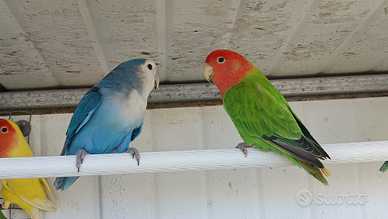 Disponibili inseparabili roseicollis singoli e coppie NT maggiorati e taglia normale maschi e femmine sia giovani che riproduttori Possibile trasporto a mano in Campania Possibile trasporto in tutta Italia tramite trasportatore.