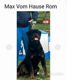 Disponibile per accoppiamento esemplare di Rottweiler maschio di 4 anni. Il cane gode di ottima salute, è regolarmente vaccinato e microchippato. Caratteristiche: Ottima morfologia, testa tipica, struttura ossea potente e carattere equilibrato. Salute: CONTROLLO RADIOGRAFICO DISPLASIA ANCA HD.B (1) DISPLASIA GOMITO ED (0) DEPOSITO CAMPIONE BIOLOGICO LABORATORIO VETOGENE - ENCI SERVIZI JLPP N/N Documentazione: Pedigree ROI (LO239739) di alta genealogia con importanti linee di sangue. Risultati Expo: Soggetto regolarmente presentato in esposizioni nazionali e internazionali con giudizi eccellenti: Ad oggi : - Word Show IFR FRANCE 2023 Judge Siegmund Trebschuh Classe Baby VERY PROMISING Mondiale IFR 2023 - 39° Daben Shau 2023 adrk Judge Anton Spindler Baby Class VV2 - Gare Nazionali ed Internazionali: n.3 ? 1° M.B n.1 ? 3° MB n.1 ? 4° M.B n.1 ? 1° ECC n.1 ? 2° ECC n.2 ? 4° ECC n.1 ? 1° ECC JCAC n.1 ? 2° ECC JCACR n.3 ? 1° ECC JCAC JCACIB n.1 ? 1° ECC, BOS GIO, JCAC, BOS n.1 ? 1° ECC, BOB GIO, JCACIB, JCAC, BOB Condizioni di Monta: La monta è disponibile esclusivamente per femmine parimenti selezionate ed in salute, dotate di pedigree, esenti da patologie ereditarie e con carattere equilibrato. Si garantisce e si richiede massima serietà Per info contattare: Domenico Triozzi 351-0238377