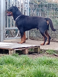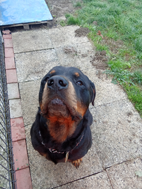 Lui è Tayson ha 4 anni sano vaccinato , bel rottweiler molto buono e socievole disponibile per accoppiamento monta.