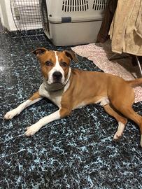 Regalo amstaff di nome Russell, dolce e affettuoso con tutti, va d'accordo con bambini e gatti tranne che con altri cani maschi, per più informazioni contattatemi al numero 3342358186.