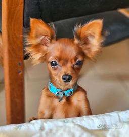 Russian Toy a pelo lungo nati il 17/06/25. Taglia piccola 23cm , peso 2,400gr da adulto .cedo con pedigree e primi vaccini. Con genitori importati dalla Russia visibili.