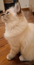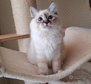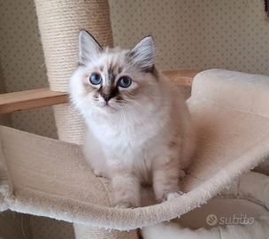 Disponibile subito un maschietto color seal tabby point dal carattere molto socievole nato il 10 marzo 2025. Viene ceduto con libretto sanitario, contratto, certificato medico veterinario di buona salute, starter kit e giochini. Effettuate 2 vaccinazioni trivalenti ed applicato il microchip. Presente esame delle feci negativo per parassiti intestinali. Pedigree ANFI. Sa usare la toilette anche con apertura dall'alto ed il tiragraffi.