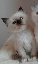Disponibili alla prenotazione 2 femmine di Sacro di Birmania nate il 30 marzo e disponibili da metà Giugno. Sono entrambe colore seal point, carattere dolcissimo tipico della razza. Verranno cedute con sverminazione, vaccino e certificato di buona salute.