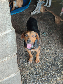 TIFONE è un cucciolo di circa sei mesi, taglia piccola, è un mix pincher e segugio, è un cagnolino inizialmente timido ma molto buono e affettuoso appena presa confidenza.