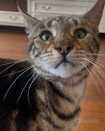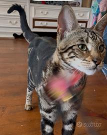 Diamo in adozione gatta Savannah F5 adulta di due anni, colore Marble, buon carattere, in salute, vaccinata. Chiediamo recupero spese di sterilizzazione di 200 euro.