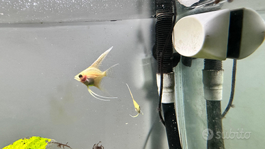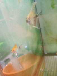 Vendo bellissimi esemplari di scalari di tre.mesi, nati e cresciuti nelle mie vasche con acqua di rubinetto,sani e robusti , esenti da malattie. Mangiano già microgranularo o scaglie sminuzzate.