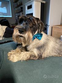 Zar, schnauzer medio sale e pepe, di 6 anni, docilissimo e di ottimo carattere, con pedigree e certificazione enci, ha partecipato anche a concorsi, alta genealogia, proviene dall'allevamento Amor di Schnauzer, disponibile per accoppiamento.
