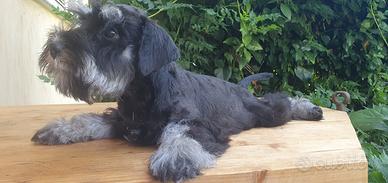 Cuccioli di Schnauzer Nano Nero Argento Pre-educati a stare in casa, a convivere con altri cani e gatti, vengono consegnati sverminati con microchip, libretto sanitario, primi vaccini, passaggio di proprietà e Pedigree. Genitori visibili.
