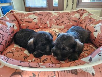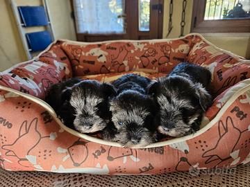 Cuccioli di schnauzer nano pepe sale alta genealogia, pronti per lasciare la mamma da metà maggio in poi. Verranno ceduti con microchip vaccinazioni e pedigree ENCI. Si possono vedere ed eventualmente prenotare.