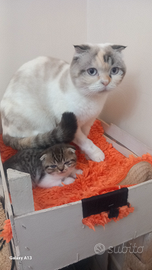 Disponibile ultima femminuccia Scottish fold abituata alla lettiera e tiragraffi. Verra ceduta con sverminazione effettuata. Genitori sono visibili e testati di patologie FELV e FIV negativo.