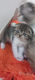 Disponibile ultima femminuccia Scottish fold abituata alla lettiera e tiragraffi. Verra ceduta con sverminazione effettuata. Genitori sono visibili e testati di patologie FELV e FIV negativo.