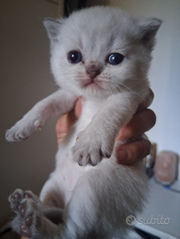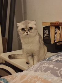 Ultimo cucciolo di Scottish silver point occhi celesti disponibile, nato il 04/01 da genitori testati di mia proprietà. Cuccioli dolcissimi e socievoli, convivono con 3 cani.Si cedono da compagnia, con vermifugo vaccino visita veterinaria, librettino sanitario. possibilità di trasporto con supplemento spesa..