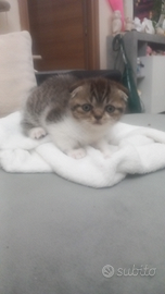 Disponibile ultima femminuccia Scottish fold abituata alla lettiera e tiragraffi. Verra ceduta con sverminazione effettuata. Genitori sono visibili e testati di patologie FELV e FIV negativo.