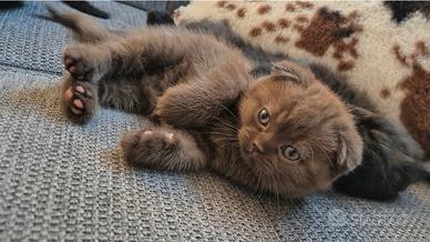 Bellissima femminuccia Scottish Fold Chocolate Tabby, di una cucciolata di 4. La gattina è nata l'8/01/2026 e verrà ceduta da compagnia con: - Primo vaccino - Pedigree con affisso - Microchip - Test feci negativo I nostri gattini crescono in un contesto familiare privo di gabbie e vengono svezzati con alimenti di prima qualità. Educati alla lettiera e al tiragraffi. Genitori testati fiv/Felv, pkd e dalle principali malattie genetiche come malattie cardiache, GSD4, PK-def, rdAc-PRA e SMA. Siamo i ChocoCaramel e ci troviamo a Calderino (Bologna). Ulteriori info e dettagli in privato